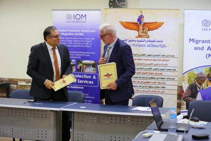 وقعت مؤسسة ماعت للسلام والتنمية وحقوق الإنسان مذكرة تفاهم مع المنظمة الدولية للهجرة في مصر، وأكد الطرفان على ضرورة الاستمرار في تعزيز حقوق المهاجرين، والمساهمة في التوعية المستنيرة وزيادة المعرفة بشأن الهجرة والقضايا المرتبطة بها، والتمكين والدمج المجتمعي الحقيقي لهم.