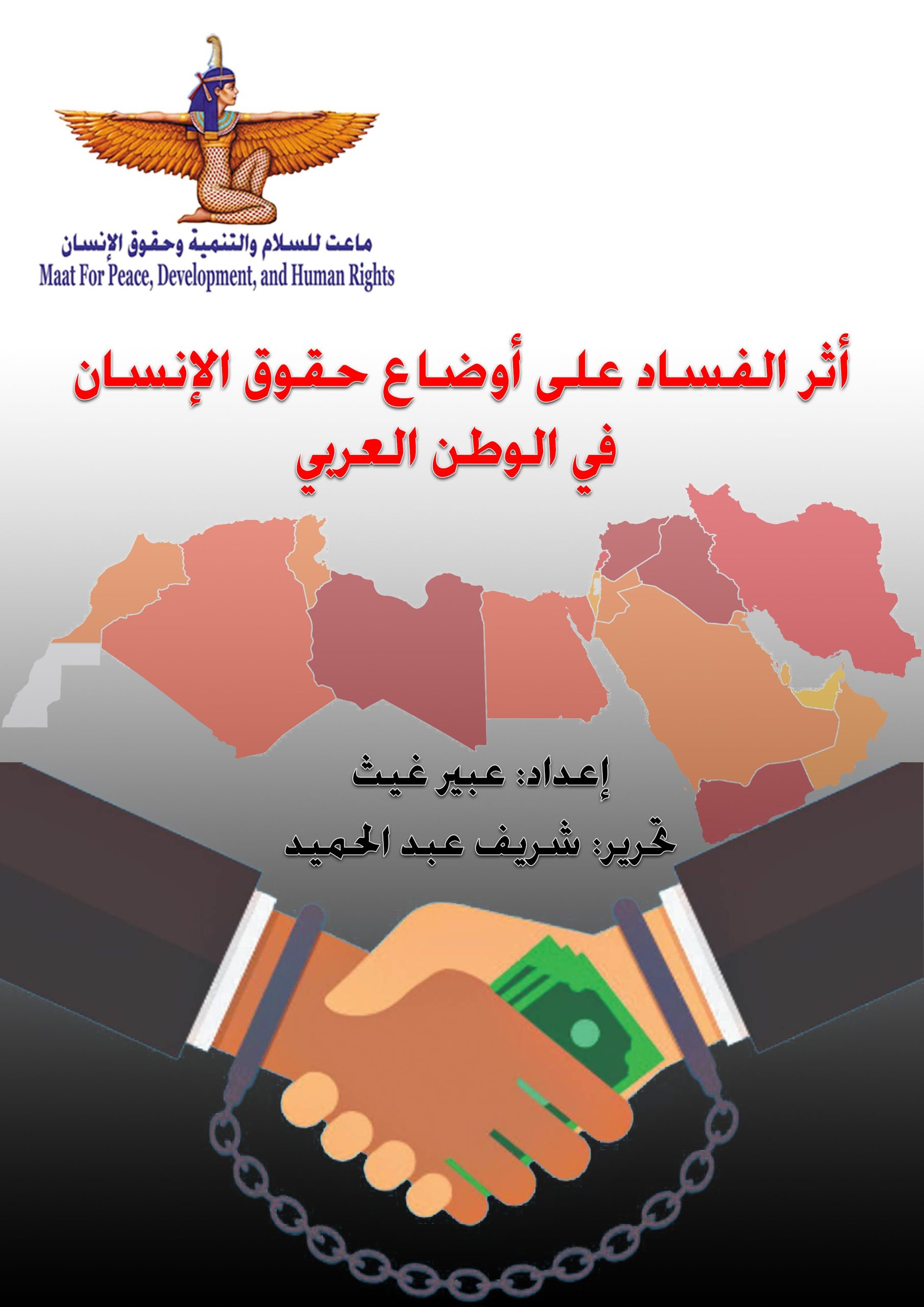 أصدرت مؤسسة ماعت للسلام والتنمية وحقوق الإنسان تقرير بعنوان “آثر الفساد على حقوق الإنسان في الوطن العربي” والذي أوضح أن الفساد بمعناه الواسع له تأثير كبير على حقوق الإنسان فهو يقوضها وينتهكها لأنه يشكل عاقبة تمنع التمتع بها، وأكد التقرير على أن أجهزة الأمم المتحدة المعنية بشؤون حقوق الإنسان سعت على دراسة العلاقة المتبادلة بين مكافحة الفساد وحقوق الإنسان. حيث تبنت اللجنة الفرعية لتعزيز وحماية حقوق الإنسان التابعة للمجلس الاقتصادي والاجتماعي عدة قرارات في هذا المجال.