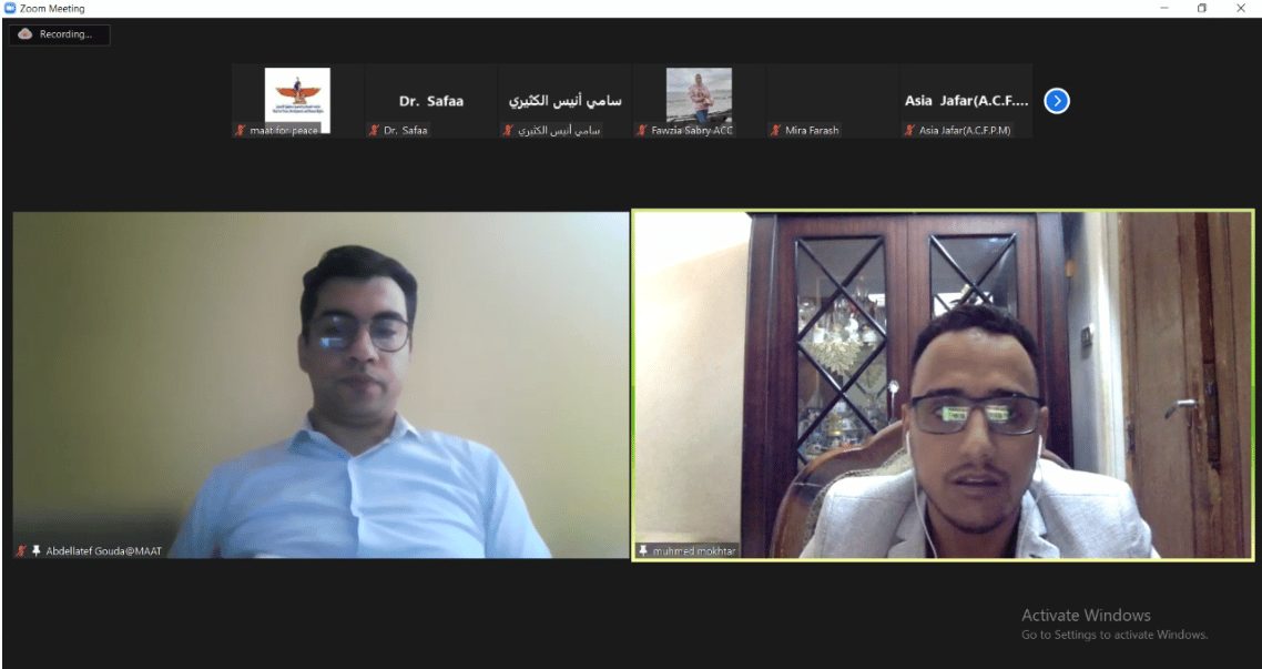 نظمت مؤسسة ماعت للسلام والتنمية وحقوق الإنسان فعالية افتراضية بتاريخ 30 يونيو 2022، على هامش مشاركتها في فعاليات الدورة 50 لمجلس الأمم المتحدة لحقوق الإنسان في جنيف. وقد تناولت الفعالية دور الآليات الإقليمية العربي في تحقيق عملية التنمية المستدامة بالتركيز على دول النزاع العربي، بالتركيز على سوريا، ليبيا، السودان، اليمن. فقد تضمنت الفعالية عدداً من المتحدثين المنتمين إلى دول النزاع المختلفة، كما ضمت متحدثين متخصصين في الشئون العربية لتناول كيفية التعافي من الصراعات وتقديم رؤية استرشادية لتحقيق عملية التنمية.