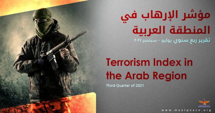 أصدرت مؤسسة ماعت للسلام والتنمية وحقوق الانسان تقرير ربع سنوي عن ظاهرة الإرهاب في المنطقة العربية، يرصد كافة العمليات الإرهابية والأنشطة المرتبطة بها والتفاعلات داخل الجماعات الإرهابية خلال الفترة من يوليو وإلى سبتمبر 2021، واعتمد التقرير في تتبعه للعمليات الإرهابية على أكثر من منهج بحثي واستقصائي في عمليتي الرصد والتحليل بهدف تحقيق أكبر استفادة ممكنة والخروج بأدق النتائج.