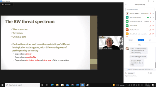 عقدت مؤسسة ماعت للسلام والتنمية وحقوق الإنسان فعالية جانبية تحت عنوان “اتفاقية الأسلحة البيولوجية: نحو التفعيل الكامل الفوري”،بالتعاون مع التحالف العالمي للحد من انتشار الأسلحة، وذلك على هامش اللجنة التحضيرية التاسعة لمؤتمر اتفاقية الأسلحة البيولوجية. وبمشاركة عدد من المنظمات الدولية والبعثات الدبلوماسية في جنيف.