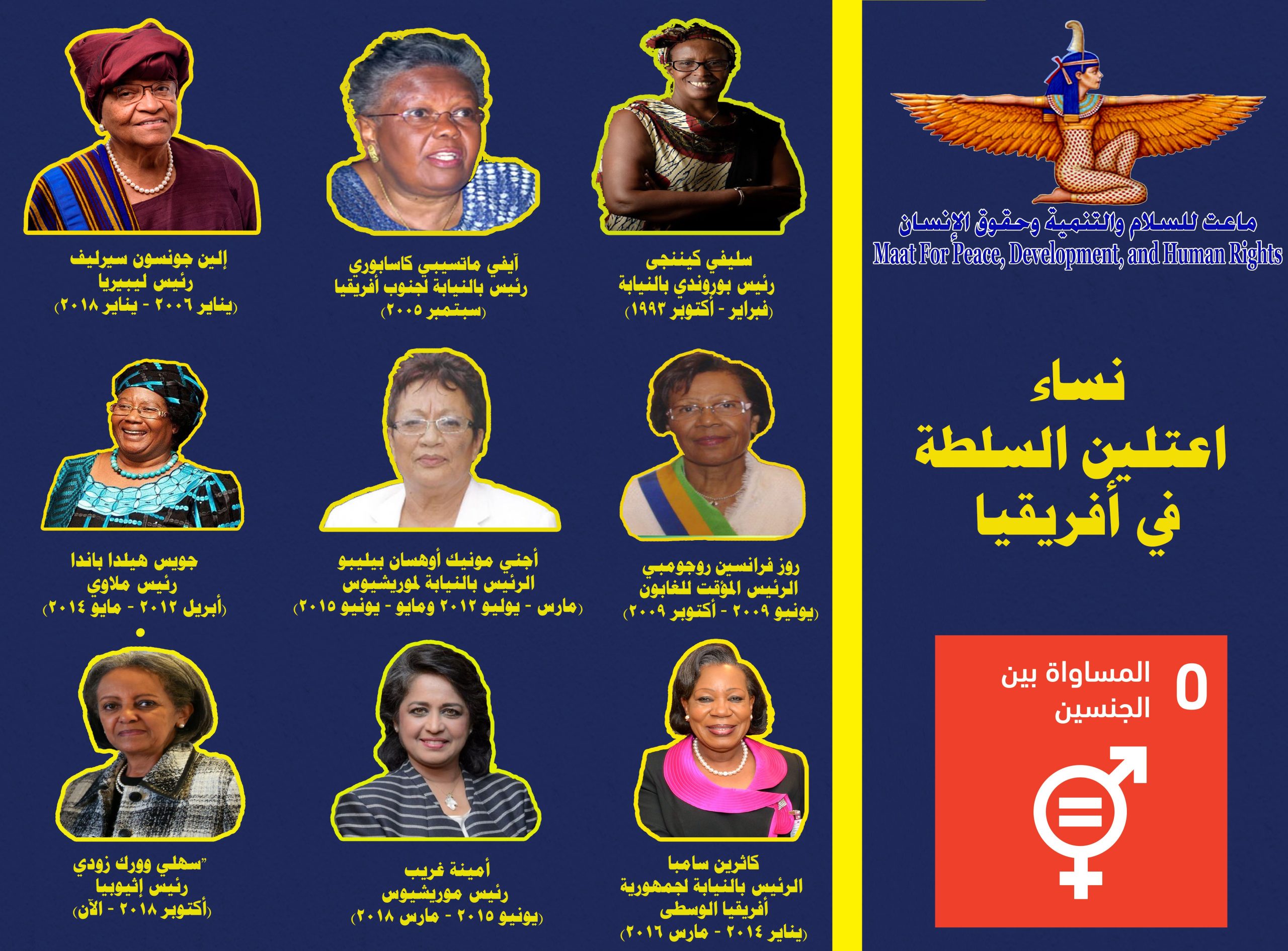 ترى مؤسسة ماعت للسلام والتنمية وحقوق الإنسان أن تحقيق الهدف الخامس من أهداف التنمية المستدامة 2030 الخاص بتعزيز المساواة بين الجنسين، أمرًا ممكنًا لا مستحيلاً؛ والدليل: تلك النساء اللائي اعتلين سد الحكم في القارة الأفريقية.