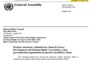 الدورة-55, فيديو, مجلس حقوق الإنسانتعقيب مؤسسة ماعت على تقرير المقرر الخاص المعني بالبيئة خلال فعاليات الدورة 55 من مجلس حقوق الانسان