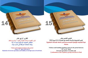 الاخبار, التقارير, دعم الديمقراطيةمرصد الانتخابات البرلمانية يصدر التقريريين 14،15 لرصد أحداث العنف والإرهاب تركز للعمليات الإرهابية في سيناء قبل موعد انتهاء حالة الطوارئ