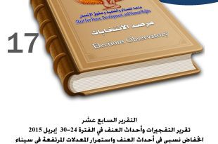 الاخبار, التقارير, دعم الديمقراطيةمرصد الانتخابات البرلمانية يصدر التقرير السابع عشر للتفجيرات وأحداث العنف – انخفاض نسبي في أحداث العنف واستمرار المعدلات المرتفعة في سيناء