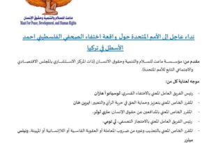 الاخبارفي نداء عاجل إلى الأمم المتحدة.. مؤسسة ماعت تطالب السلطات التركية بالكشف عن مصير الصحفي الفلسطيني “الأسطل” المختفي قسرياً