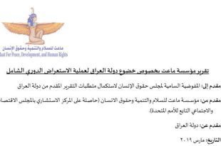 الاخبار, الاستعراض الدوري الشاملتقرير مؤسسة ماعت بخصوص خضوع دولة العراق لعملية الاستعراض الدوري الشامل