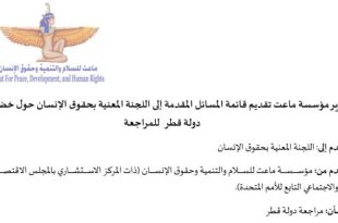 الاخبارتقرير مؤسسة ماعت تقديم قائمة المسائل المقدمة إلى اللجنة المعنية بحقوق الإنسان حول خضوع دولة قطر للمراجعة