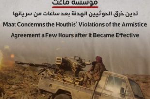 الاخبارمؤسسة ماعت تدين الهجمات الحوثية على المملكة العربية السعودية وتطالب مجلس الأمن بعقد جلسة عاجلة
