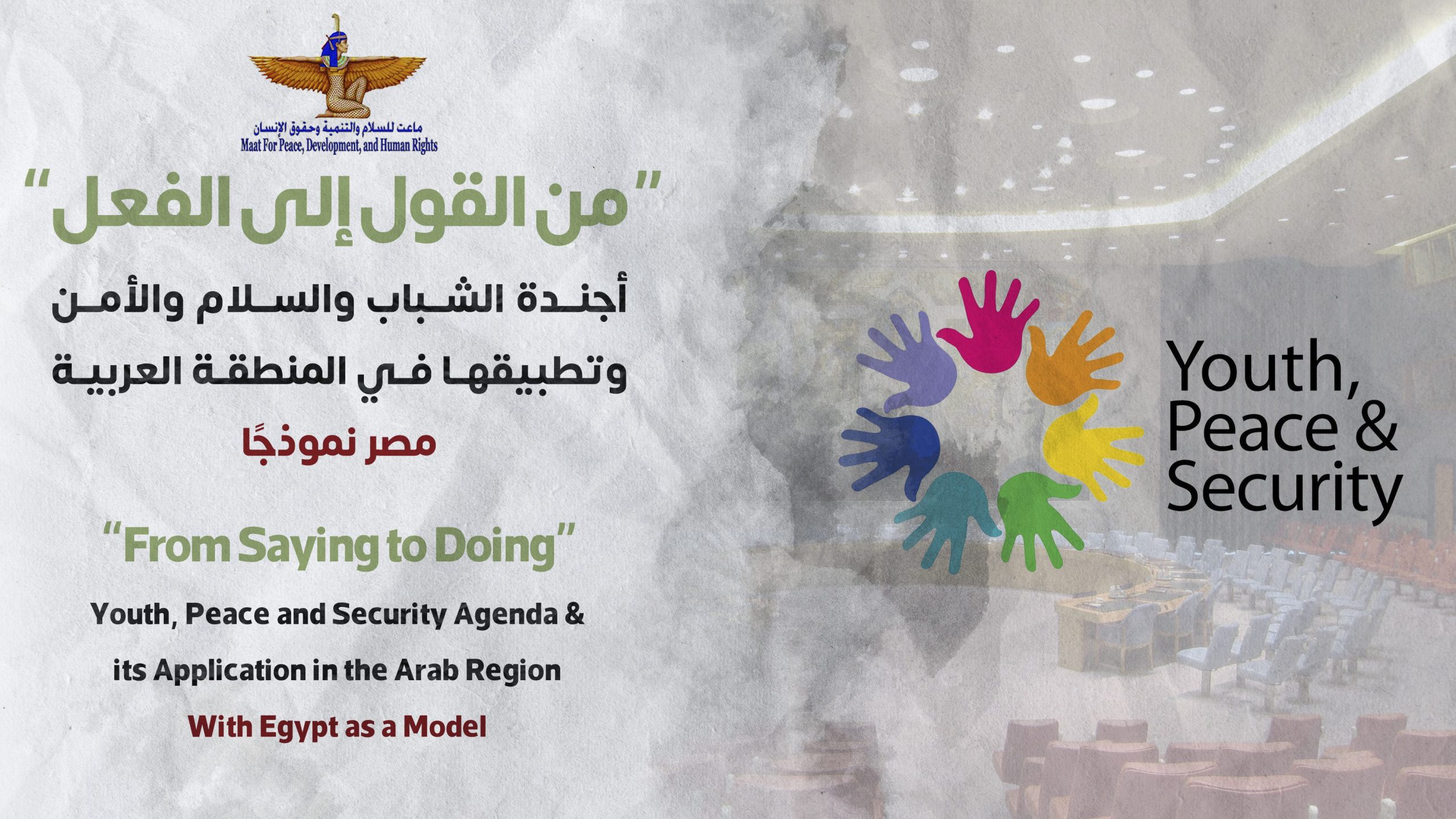 Maat for Peace, Development and Human Rights Association has issued a study entitled ("From Saying to Doing" Youth, peace, and security Agenda and its application in the Arab region...With Egypt as a Model), which highlights the five pillars of Resolution No. 2250 of 2015, issued by the Security Council, related to youth Peace and Security, and its subsequent resolutions, such as Resolution No. 2419 of 2018, and Resolution No. 2535 of 2020, the three resolutions constitute the current general framework of the Youth, Peace and Security agenda, and the study includes a roadmap containing eight goals based on the Youth, Peace and Security Agenda to enhance the role of youth in Egypt Through this study, Maat Association called on the Arab countries to adopt national action plans in order to implement the youth, peace and security agenda based on the three Security Council resolutions mentioned above. The study also concluded with a number of recommendations, including increasing the funding allocated to the implementation of the youth, peace and security agenda, especially supporting the access of youth organizations to more additional resources, the need to adopt specific steps to improve education, address unemployment, and address other issues of concern to young people, whether at the level of law or in practice. ; The necessity of adequate representation of youth in conflict areas in the Arab countries in peace negotiations. Creating platforms for consultation between executive leaders and youth organizations.