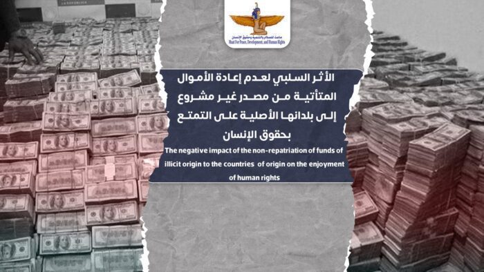 In this context, Ayman Okeil, the human rights expert and president of Maat, stressed that failure to return funds from illegal sources deprives countries of the resources necessary to implement human rights, including economic, social and cultural rights, especially the right to development, which threatens stability and sustainable development of countries and undermines the values of democracy and the rule of law.