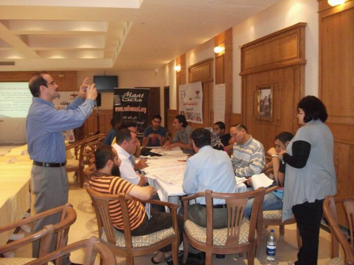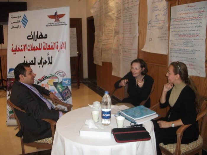 Maat Foundation for Peace, Development and Human Rights with the Germany Hanns Seidel Foundation concluded its first training for Egyptian political parties on the necessary knowledge and skills to manage effective electoral campaigns for the Egyptian parties, where 45 participants took part representing twenty political parties of the Egyptian political parties. This training course comes within the framework of Maat Foundation for Peace, Development and Human Rights to support the political participation of parties in the upcoming elections taking place in Egypt after the revolution of 25 of January. At the end of the training, participants emphasized that they are able to contest the upcoming election in the light of the skills and capabilities which they were trained during training, which continued from the period of October 28, 2011 until November 2, 2011. The participants also stressed the importance of voters awareness of the new electoral system in order to avoid the invalidity of the votes, as well as support volunteering work and attract new volunteers for the campaign despite the poor economic conditions taking place in Egypt and can't do without volunteers. Participants called for the importance of working to raise funds for the campaign in kind or cash, and how to push and motivate supporters and fans for their contributions. At the closing session, Ms. "Nina Brash" distributed certificates of participation and training bags to participants, and she emphasized on the spirit of cooperation and fair competition between the Egyptian political parties that took place within the halls of training. Maintaining the integrity of elections is the path of democratic transformation in Egypt. All the participants confirmed that they have committed to honor charter to support the integrity of elections and transparency.