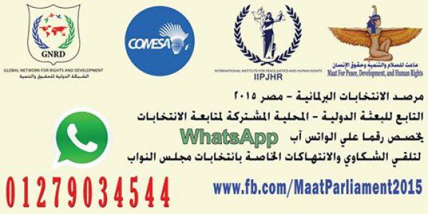 In a related context, the mission’s main operations room at the Maat Foundation for Peace, Development and Human Rights announced the allocation of the “WhatsApp” number to receive complaints and testimonies from voters and candidates directly on the number 01279034544 during the two polling days.