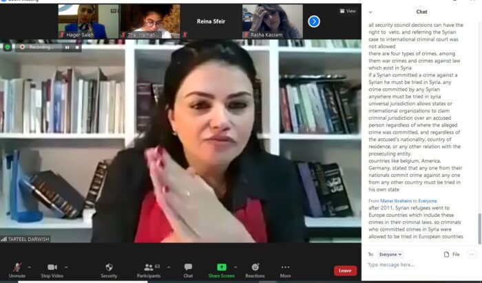 On days 2 & 3, Reina Sfeir, Director of the Human Rights Legal Clinic at La Sagesse University, and the victims’ Liaison Officer and Outreach Officer at the STL, spoke about the development of international criminal justice, international courts, and tribunals, as well as the rights of victims before International courts. Dr. Roula El Derbass, the former Chef de Cabinet, Defense Office at the STL, gave a presentation entitled (The Rights of the Accused before International Courts), in which she reviewed first the role of judges and their perpetual seeking of truth, and, then, mentioned the role of defense departments and offices in the International Criminal Court. On the third and last day, Dr. Olga shared the participants with key facts about the judiciary at the STL. She talked about the 14 February 2005 terrorist bombing in Beirut, Lebanon, that killed former Lebanese Prime minister (Rafik Hariri), and how the International Criminal Court handled this case. Last but not least, Dr. Tarteel Darwish, Associate Professor of International Criminal Law at the Beirut Arab University, concluded the webinar with an extensive discussion on Syria, and elaborated on the principles of accountability, and universal jurisdiction. To sum up, all experts stressed the importance of enhancing students' capacities to understand international conventions and repeated the role of legal mechanisms in punishing perpetrators of crimes.