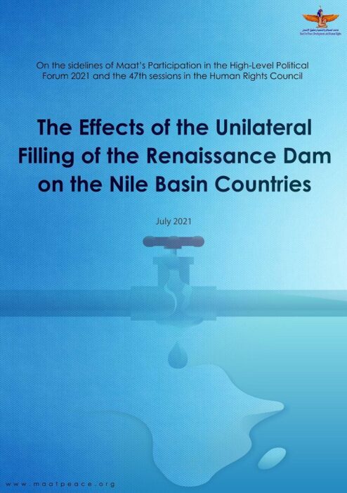 In conjunction with Ethiopia's unilateral second GERD filling without consideration for the rights of the downstream countries, the Policy Analysis Unit at Maat for Peace, Development and Human Rights issued a new study entitled "The Negative Impacts of the GERD on the Nile Basin Countries". The study explains the potential effects of the GERD on the Nile Basin countries and the expected risks in the event of not reaching a just and legally binding agreement guaranteeing Ethiopia’s right for development without harming or undermining the interests and rights of Egypt and Sudan.
