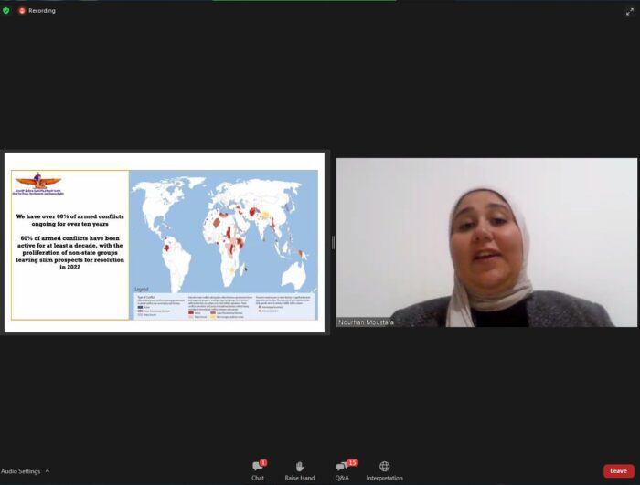 Maat participated in a panel discussion at the conference on the challenges facing the implementation of IHL and how to protect future generations. In its intervention, Maat indicated that 60% of armed conflicts have been active for at least one decade, and more than 60% of armed conflicts have been going on so far. All this is even exacerbated by the proliferation of non-governmental groups, which narrows down the possibilities of solving them in 2022.