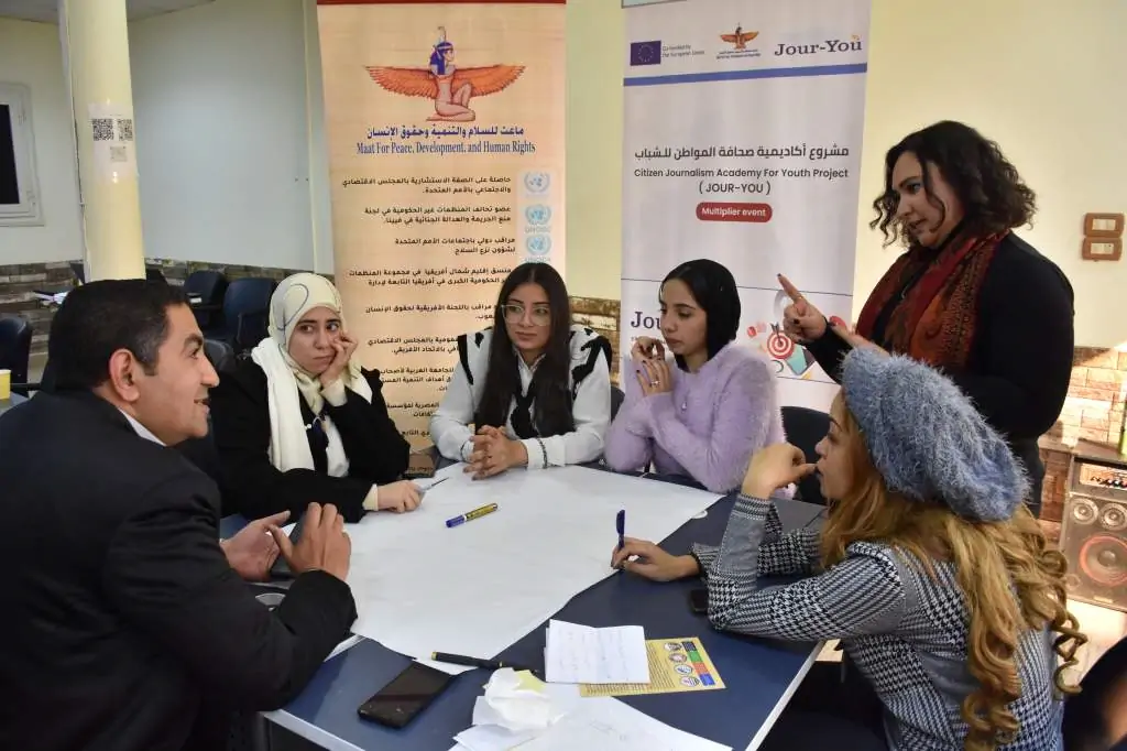 As part of the Citizen Journalism Academy project, the Maat for Peace, Development, and Human Rights organized a local training session on "Citizen Journalism and Information Verification." The training focused on the significance of citizen journalism and equipping young people with methods to enhance critical thinking, combat misinformation, verify information, develop digital and leadership skills, and raise awareness among the 25 participating youth and media professionals.