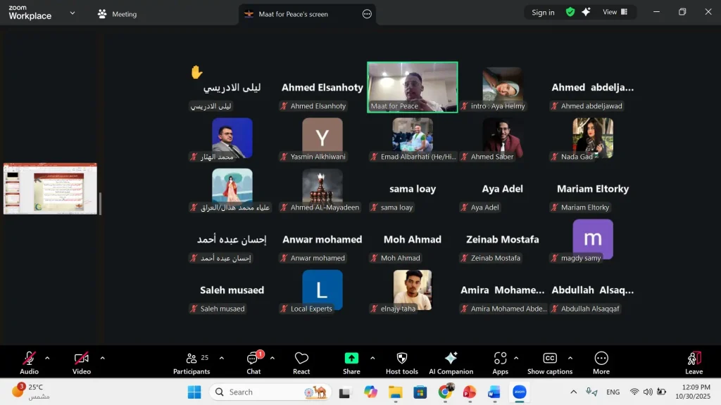 Both “Maat for Peace, Development and Human Rights” and the “International Alliance for Peace and Development” organized a peaceful protest under the theme "Unite for Peace", in the Broken Chair square, in front of the United Nations headquarters in Geneva, Switzerland. The event was attended by a group of Young Peacebuilders from 18 countries from Europe, Africa, and South America, within the framework of Maat’s participation in the 52nd session of the Human Rights Council, in order to shed light on a number of issues that constitute an obstacle to building peace and development. Participants expressed regret about the human rights situation in the world, and the deplorable current condition, especially with the existence of the element of selectivity in dealing with human rights issues. For example, after more than 75 years of the Palestinian cause, the Council is still unable to make significant progress in improving the conditions of the Palestinians. During the 52nd session of the Council, the Council did not address the Palestinian issue or the violations against Palestinian civilians by Israeli occupation forces.