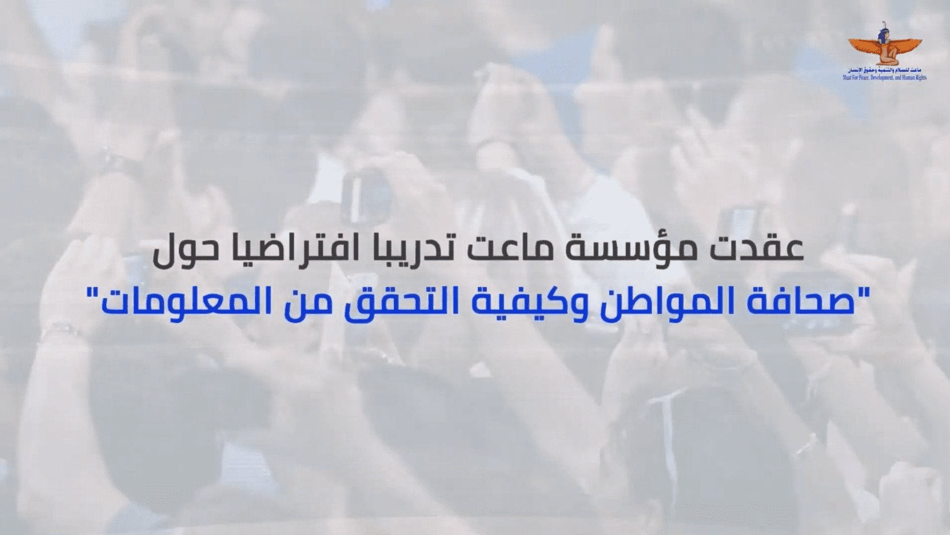 Maat for Peace, Development and Human Rights has held a virtual training on "Citizen Journalism and How to Verify Information" for journalists and media professionals in the Arab region. The training was attended by participants from 9 different countries, including Tunisia, Libya, Iraq, Morocco, Syria, Jordan, Yemen, Somalia, and Sudan.