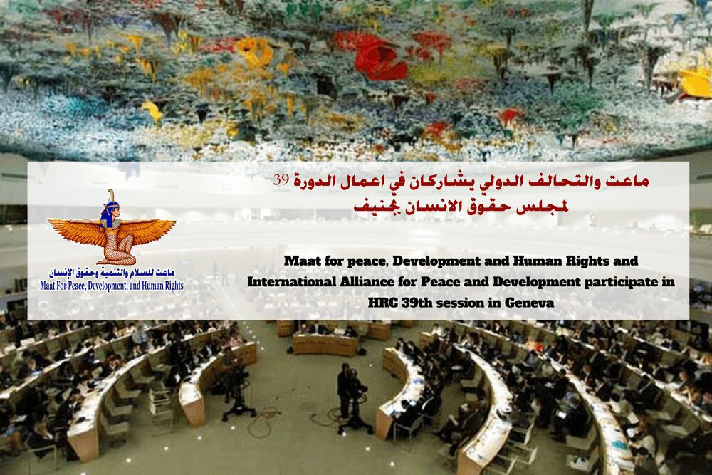 The news and events of the Maat Foundation and its international alliance can be followed during the 39th session of the Human Rights Council through its Hash Taj website: