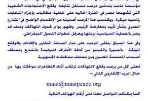 NEWSWhat happened is a popular revolution and not a military coup. Maat calls for the Egyptian people's choices to be respected and the rejection of violence and exclusion